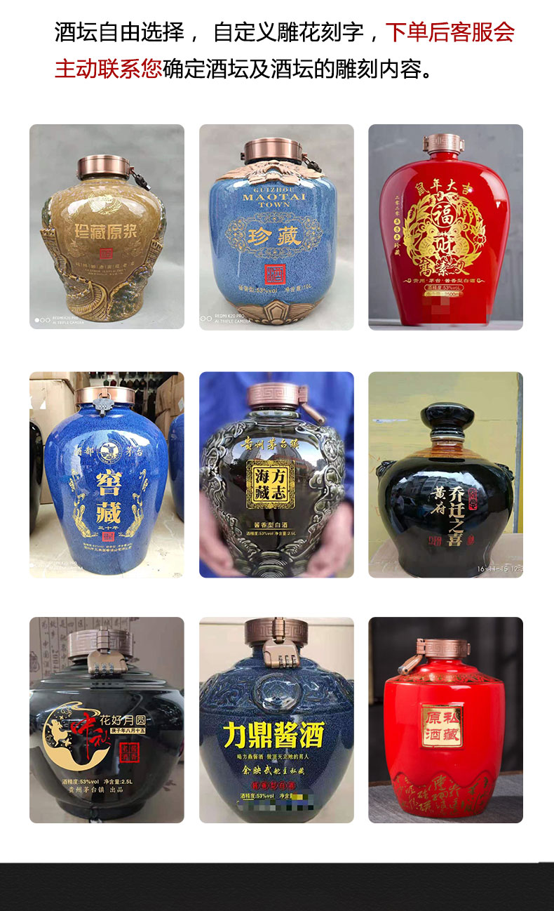 下单后,客服会主动联系您,确定您想要的订制酒坛和需要雕刻的内容。